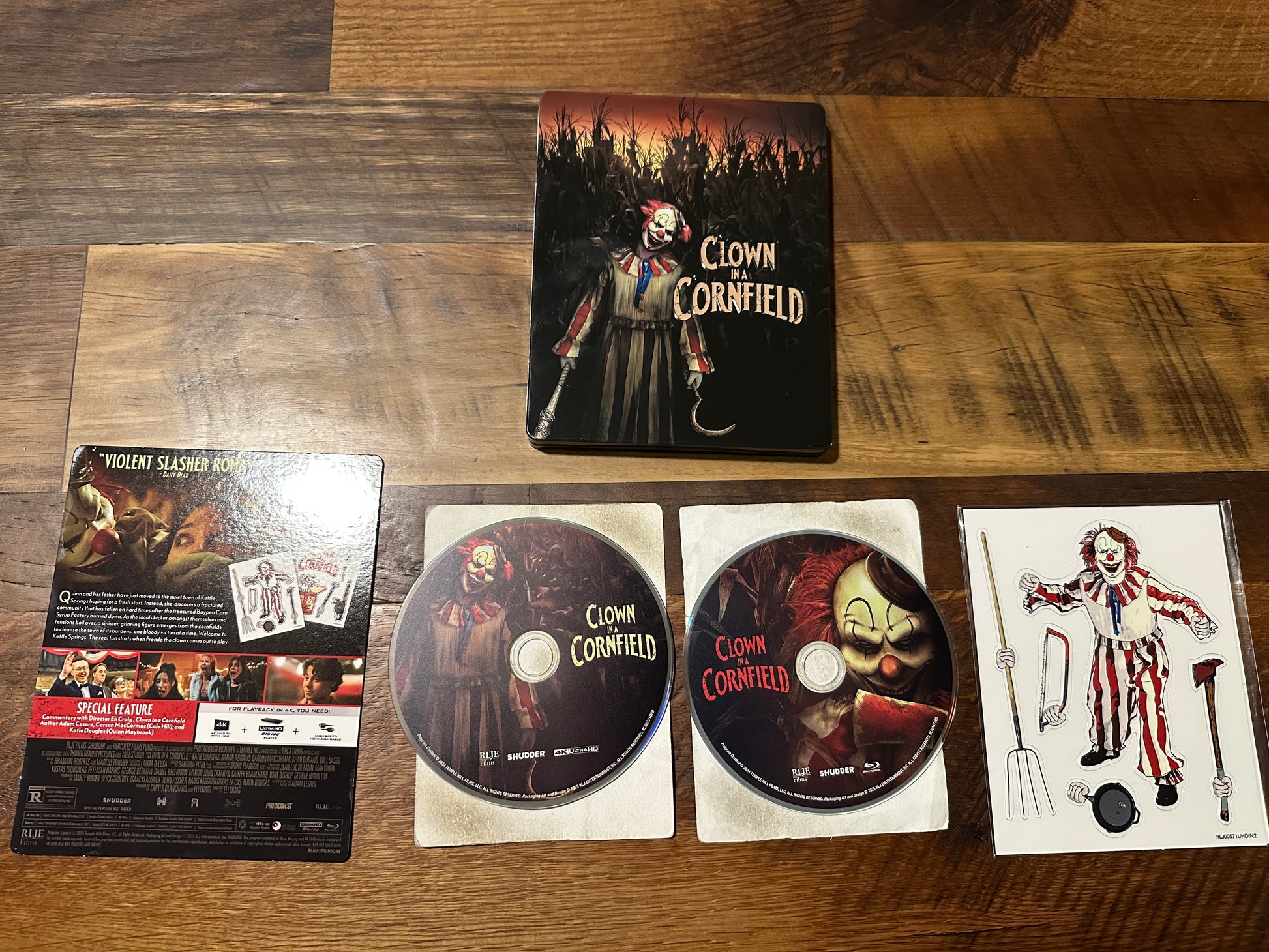 Experience the terror in stunning 4K Ultra HD and Blu-ray with Clown In A Cornfield from RLJE Films. This limited edition Steelbook release includes no digital copy, allowing you to fully immerse yourself in the horror without any interruptions. Perfect for collectors and horror aficionados alike.