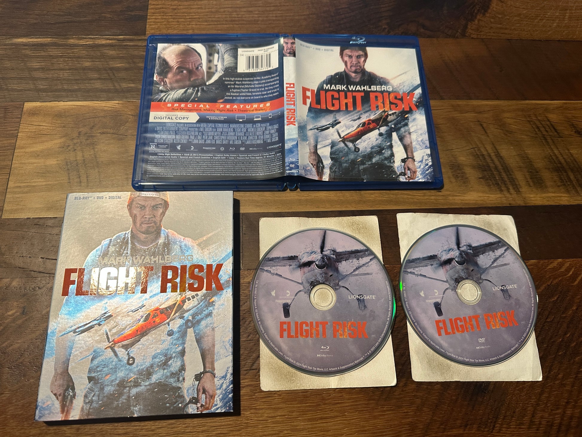 Flight Risk Blu ray/DVD-Mark Wahlberg-Lionsgate-Slipcover-No Digital