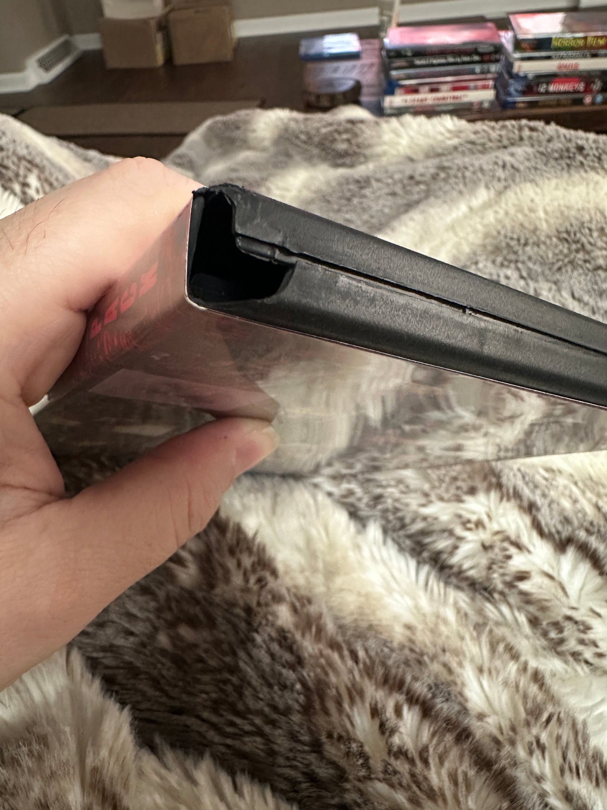 THE DISC HOLDERS HAS SOME PIECES OF PLASTIC BROKE SO IT IS NOT HOLDING THE DVD PROPERLY. BOTTOM OF THE CASE HAS A BROKE PIECE ALSO (see picture 3)